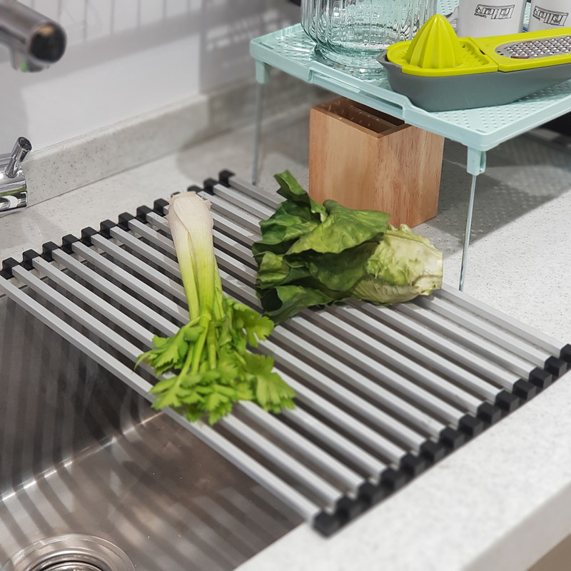 آبچکان روی سینک مدل رولی فقط یک محافظ سینک نیست. با طراحی چند منظورهی خود، این سبد را میتوان به عنوان یک سینی آبچکان نیز استفاده کرد. به کمک آن، میتوانید میوههای شسته و یا ظروف تمیز شده را به آسانی خشک کنید.