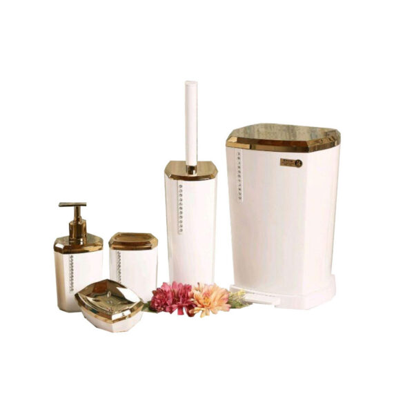 ست سرویس بهداشتی پنج پارچه بتیس نگین دار سفید طلایی