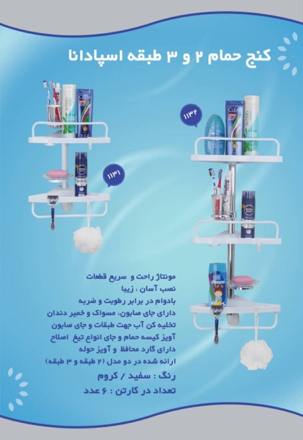 - دارای جای مسواک و خمیردندان و جای صابون به صورت مجزا