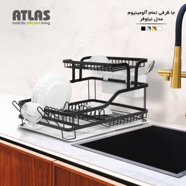 آبچکان رومیزی آلومینیومی پرتوبازار دارای طراحی زیبایی و جا دار است. این جا ظرفی کنار سینک از دو طبقه تشکیل شده است؛ طبقه اول از دو بخش جا بشقابی و جا قاشق و چنگال تشکیل شده است. و در نیم طبقه که دارای سطحی صاف هست ظروفی از جمله لیوان، استکان را میتوان بر روی آن قرار داد علاوه بر آن، آبچکان رومیزی آلومینیومی دارای جای آویزان لیوان به صورت جداگانه در قست جلوی نیز میباشد که شما را از قلاب های جدا با طرح نا هماهنگ بی نیاز می کند.