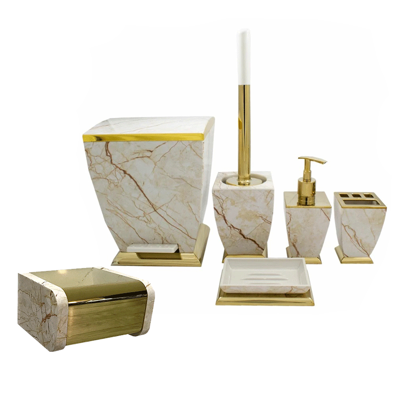 ۱.سطل زباله ۲.توالت شوی(+دسته توالت شوی) ۳.جامایع(+سری جامایع) ۴.جامسواک5.جاصابون