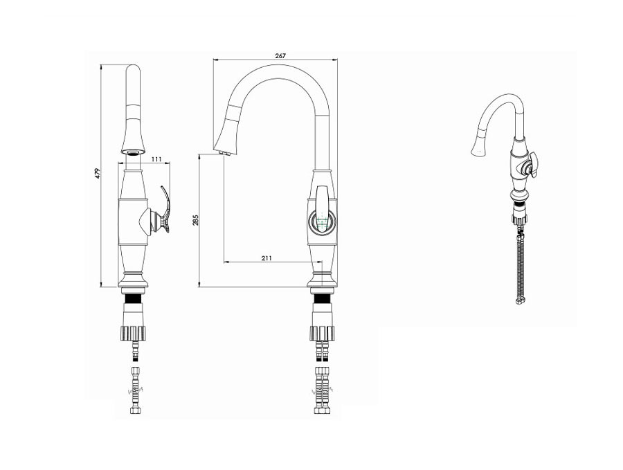 از جنس و رنگ شیر که بگذریم به مکانیزم خروج آب و متعلقات شیر ظرفشویی شودر مدل گلوریس می رسیم. جریان آب در این شیر با استفاده از کارتریج سرامیکی جاری می شود که کار آن مخلوط کردن آب گرم و سرد و کنترل میزان فشار آب میباشد. کارتریج سرامیکی جزو بهترین نمونه های کارتریج موجود در بازار محسوب میشود که با وجود این نوع کارتریج خیالتان راحت است که دیگر حتی یک قطره آب نمیچکد. این کارتریج همچنین مقاومت بسیار بالایی در برابر دما و فشار دارد. همچنین وجود پرلاتور یا آبفشانی که در این شیر وجود دارد، باعث پاشش آب به صورت پودری میشود. دلیل پودر شدن آب را میتوان در ترکیب آب با هوا جستجو کرد. بدین ترتیب که هوا، مولکولهای آب را میشکند و به اصطلاح علمی آن را پودر میکند. همچنین این پرلاتور باعث صرفهجویی در مصرف آب میشود. از همین روست که به آن پرلاتور کاهنده مصرف آب گفته میشود. شیر ظرفشویی دو منظوره علم فنری شودر مدل آتلانتیک طلامات دارای سه ورودی آب سرد، آب گرم و آب تصفیه در پایین شیر می باشد.